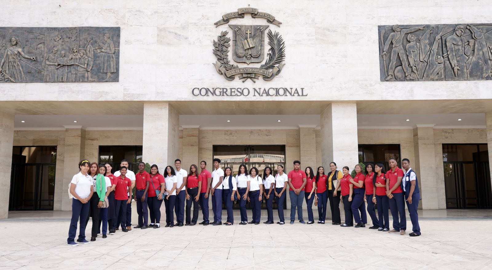 La delegación que llegó al Congreso Nacional en el marco del programa visitas Guiadas estuvo conformada por 24 estudiantes y cuatro docentes, incluyendo la directora del referido centro educativo.