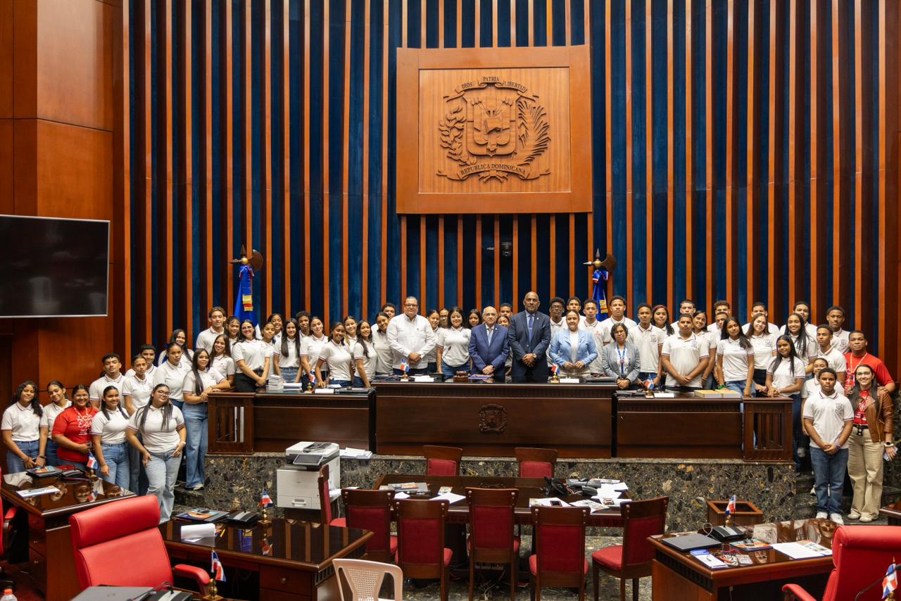 SANTO DOMINGO. – El Senado de la República recibió a una delegación de 52 estudiantes y cuatro docentes del Politécnico Salesiano Sagrado Corazón de Jesús, del municipio Mao, provincia Valverde. El grupo realizó un recorrido por las instalaciones del órgano legislativo en el marco del programa Visitas Guiadas.