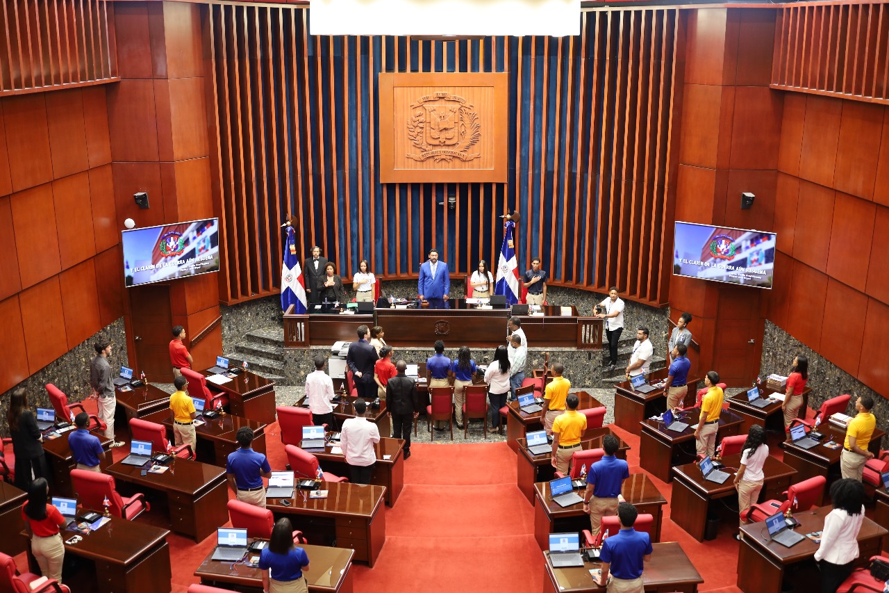 Como parte del recorrido, los visitantes fueron recibidos por el representante de La Altagracia, Rafael Barón Duluc, en el Salón del Hemiciclo, donde vivieron la experiencia de ser senadores por un día, y participaron en una sesión simulada.