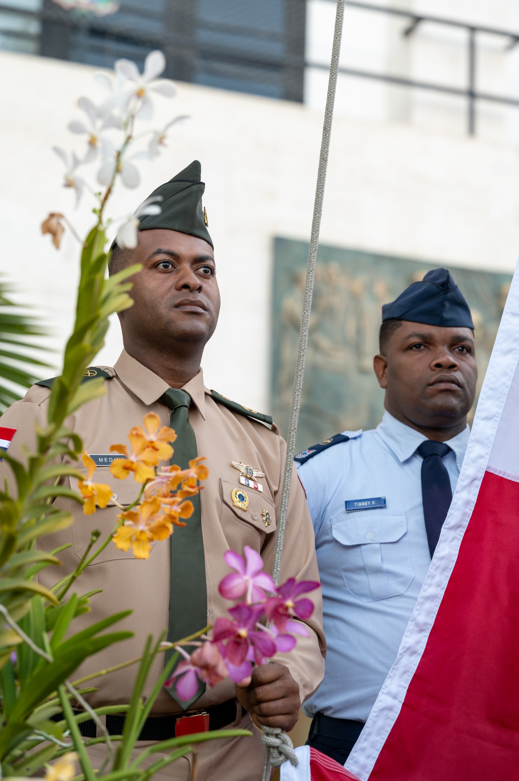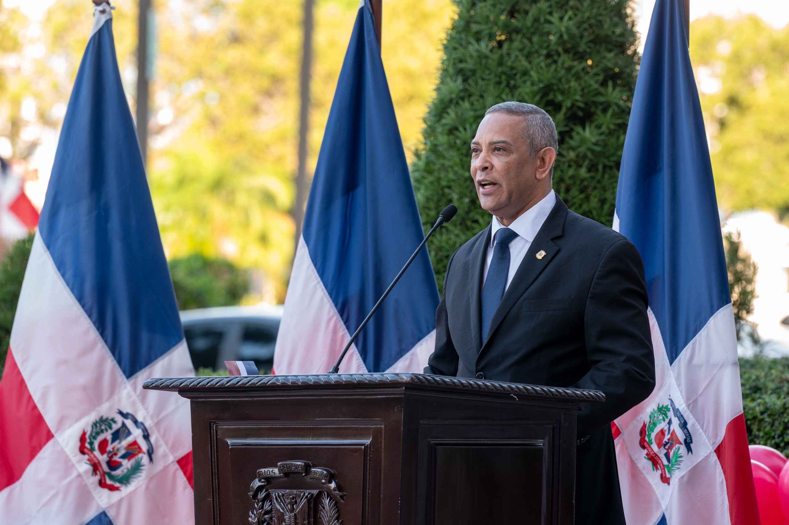 El acto solemne fue realizado en la explanada frontal del palacio del Congreso Nacional, donde se congregaron senadores, colaboradores de la Cámara Alta y miembros del Ejército de la República Dominicana, la Policía Nacional y otros organismos castrenses.